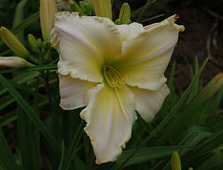 (Salter, 2005) height 26in (66cm), bloom 5in (12.5cm), season M, Semi-Evergreen, Tetraploid, 30 buds, 4 branches, Yellow with green edge above green throat.